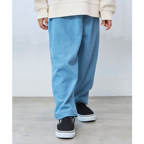凹凸のあるワッフルコール素材が、表情豊かなシルエットをつくるイージーパンツ。