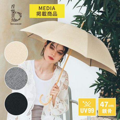 リネンライクな風合いの生地にバンブー手元がアクセント。コーディネートに合わせやすいカラーが夏の日差しに映える。