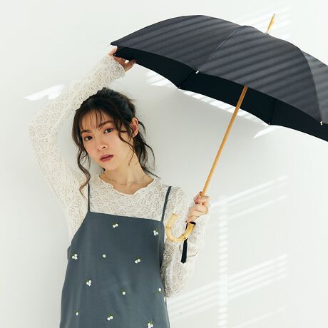○傘生地には防水撥水加工を施し、縫製には撥水糸を使用していますが、激しい雨や長時間のご使用では雨が染み込むことがございます。また飾り加工部分(刺繍、ステッチ、パイピング、テープ等)はデザインの特性上、完全な防水撥水加工が難しい場合があり雨が染みやすいのでご注意下さい。