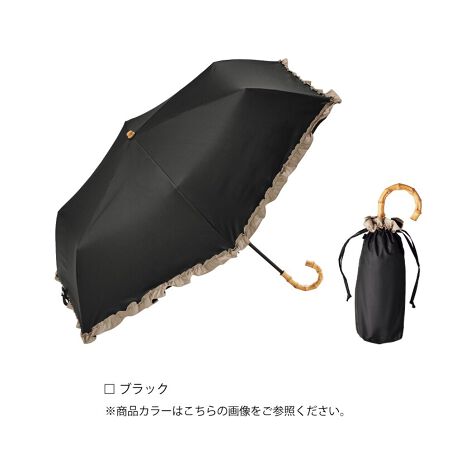 定番のフリル日傘をアップデート。バンブー手元とバイカラーのフリルがポイント。