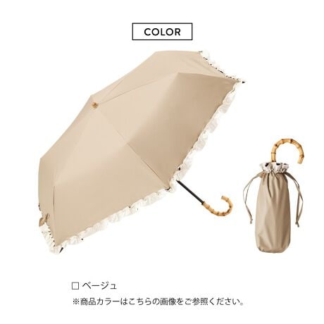 定番のフリル日傘をアップデート。バンブー手元とバイカラーのフリルがポイント。