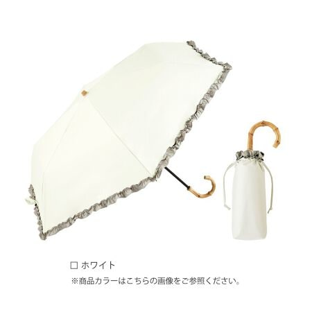 定番のフリル日傘をアップデート。バンブー手元とバイカラーのフリルがポイント。