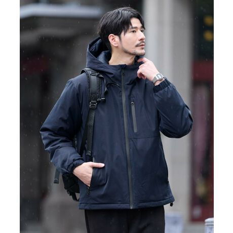 キレイめにもカジュアルにも合わせられるマウンテンパーカーテイストのフード付きデザインです。ボリュームのあるフードと一体型になった高さのあるネックは首回りを暖かく包み込んでくれます。ファスナーは全て止水ジップを採用しました。前を閉じて着用したときに冷たいファスナーの引手が肌に当たってしまうのを防ぐチンガードも付けています。袖口はゴムを通して窄めて、裾にも絞れるドローコードを通しました。防風性を高めるディテールまでしっかり詰め込んだ、機能面まで頼れるアウターです。