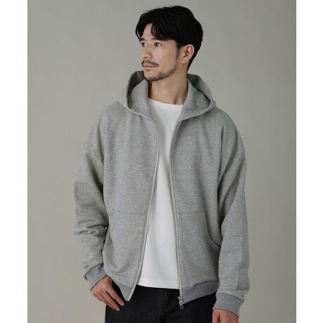 ワイドな身幅と短めの着丈が絶妙なバランスを生み、シンプルながらも今っぽい抜け感を演出。ダブルジップ仕様で、開け方次第でシルエットを変化させたりインナーをレイヤードさせたりと、着こなしを自由に楽しめます。フード部分は生地を二重にして厚みを出すことで、立ち上がりがキープされるように設計。さらに、ゆとりのあるアームホールとドロップショルダーで、リラックス感溢れる一着に仕上げました。