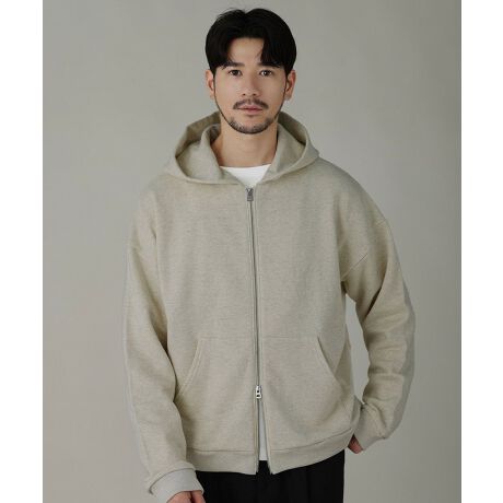 ワイドな身幅と短めの着丈が絶妙なバランスを生み、シンプルながらも今っぽい抜け感を演出。ダブルジップ仕様で、開け方次第でシルエットを変化させたりインナーをレイヤードさせたりと、着こなしを自由に楽しめます。フード部分は生地を二重にして厚みを出すことで、立ち上がりがキープされるように設計。さらに、ゆとりのあるアームホールとドロップショルダーで、リラックス感溢れる一着に仕上げました。