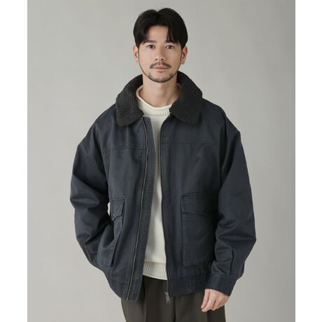 襟のボアや大き目のフラップポケットがアクセントになるフライトジャケット。