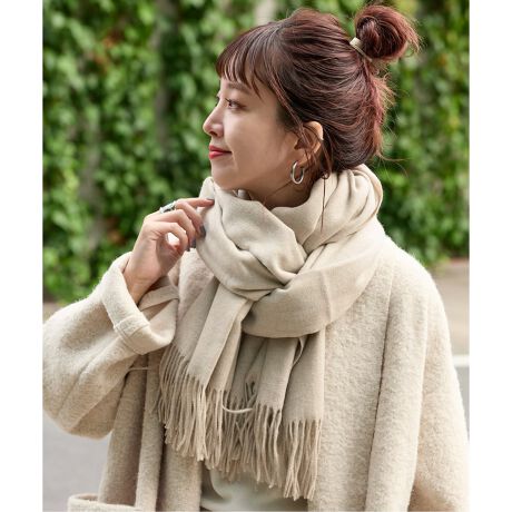 カシミヤタッチの大判マフラー。