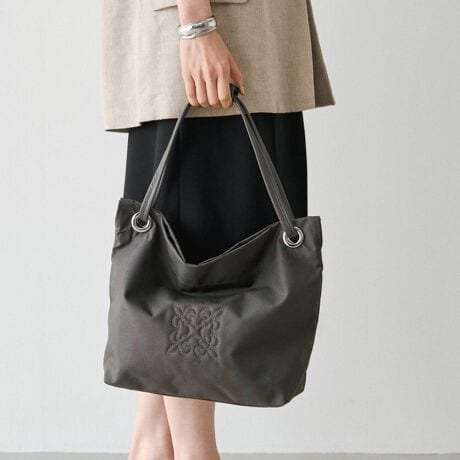 上質なナイロン素材にモノグラム刺繍をあしらった、ラシットらしいデザイン性と機能性を兼ね備えたトートバッグ。