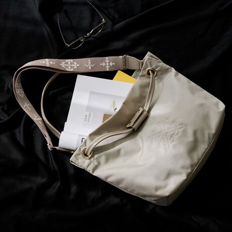 上質なナイロン素材にモノグラム刺繍をあしらった、ラシットらしいデザイン性と機能性を兼ね備えたトートバッグ。