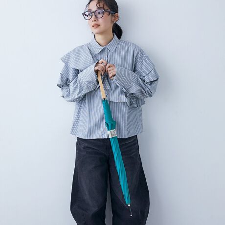 ○傘生地には防水撥水加工を施し、縫製には撥水糸を使用していますが、激しい雨や長時間のご使用では雨が染み込むことがございます。また飾り加工部分(刺繍、ステッチ、パイピング、テープ等)はデザインの特性上、完全な防水撥水加工が難しい場合があり雨が染みやすいのでご注意下さい。