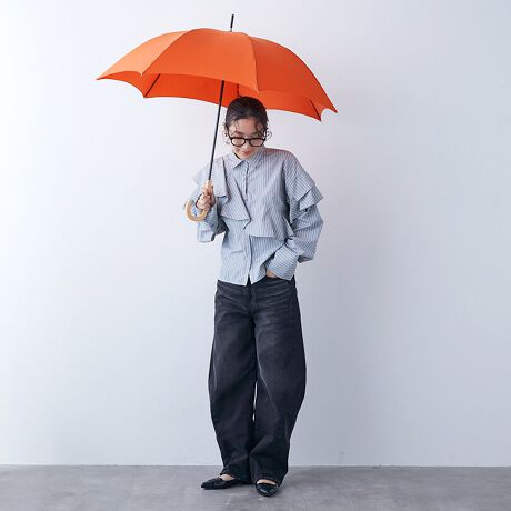 ○傘生地には防水撥水加工を施し、縫製には撥水糸を使用していますが、激しい雨や長時間のご使用では雨が染み込むことがございます。また飾り加工部分(刺繍、ステッチ、パイピング、テープ等)はデザインの特性上、完全な防水撥水加工が難しい場合があり雨が染みやすいのでご注意下さい。