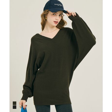 Vネックが顔まわりをすっきり見せるニットチュニック。