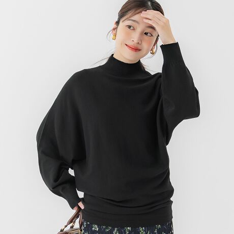 首元をやさしく包み込むボトルネックが上品な印象を与える、シンプルで使いやすいニットチュニック。