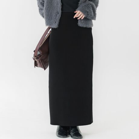 ハイウエストデザインで腰まわりをすっきり見せるニットスカート。
