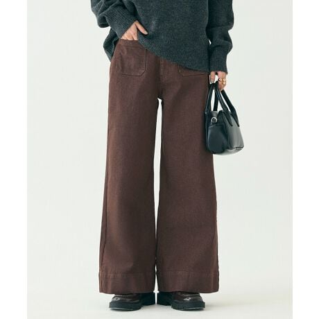 深みのあるダークブラウンがコーデを大人っぽく引き締めるワイドパンツ