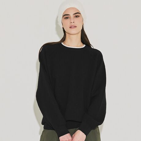 スウェットのようなカジュアルな雰囲気と、ニットならではの上品さを兼ね備えた一枚。