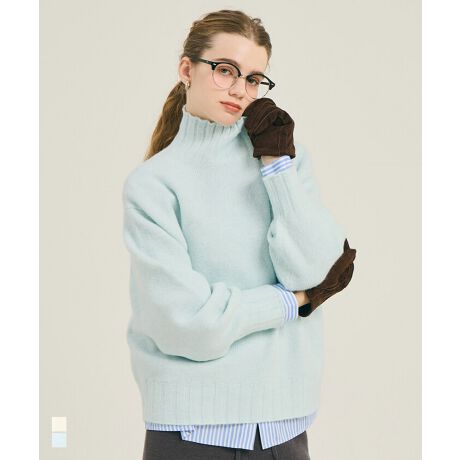 旬シルエット!ボリュームスリーブボトルネックニットトップス