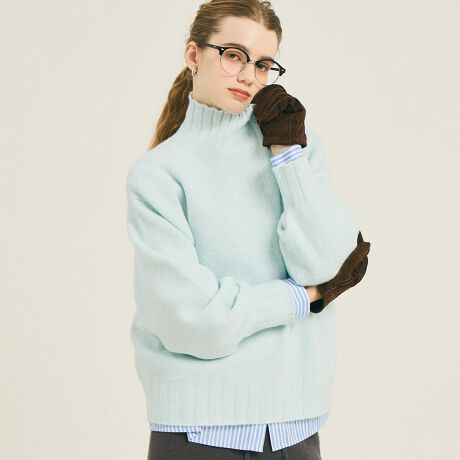 旬シルエット!ボリュームスリーブボトルネックニットトップス