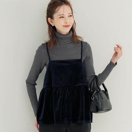 タートルやシアートップスとのレイヤードでぐっとトレンド感UP。