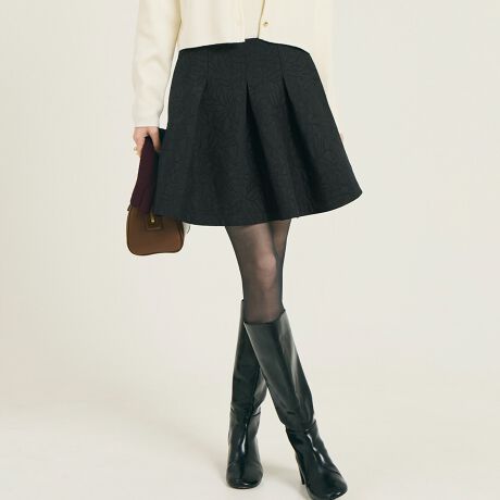 タックデザインが立体的なシルエットをつくり、上品な広がりを演出するミニスカート。