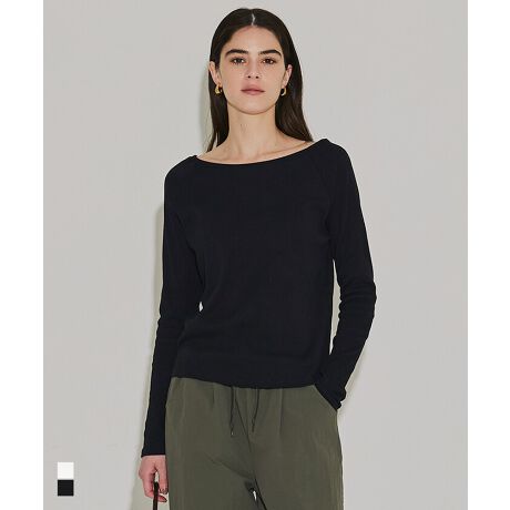 首元をすっきり見せるボートネックデザインで、女性らしい抜け感をプラス。
