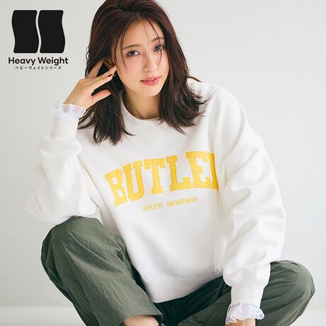 トレンドのヴィンテージライクなロゴデザインが目を惹くスウェット。