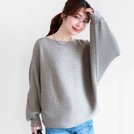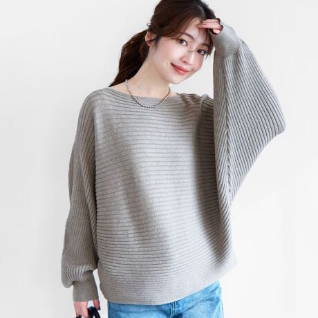 ゆったりとしたドルマンスリーブが生み出すリラックス感と、ボートネックの抜け感が絶妙なバランス。