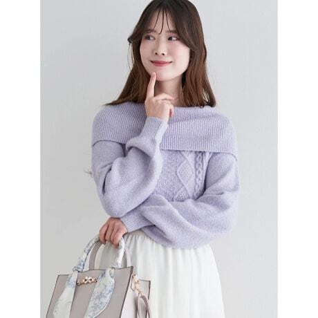 立体感のあるケーブル編みが上品なオフタートルプルオーバー。