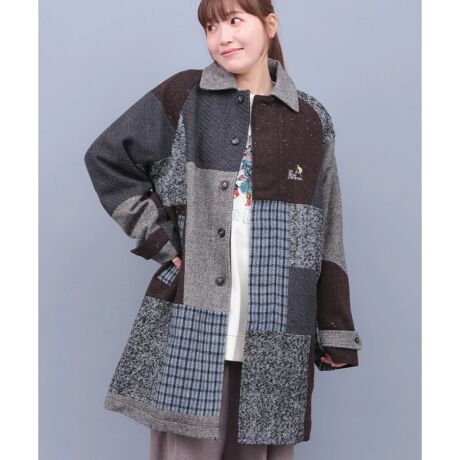 トラディショナルな雰囲気のバルマカンコートに様々な生地の切り替えで遊び心をプラスした go slow caravan の1枚。