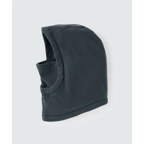 顔の下半分を覆う共地の風よけがついており、顎下のドローコードで顔周りを絞ることでさらに防寒性を高められる。