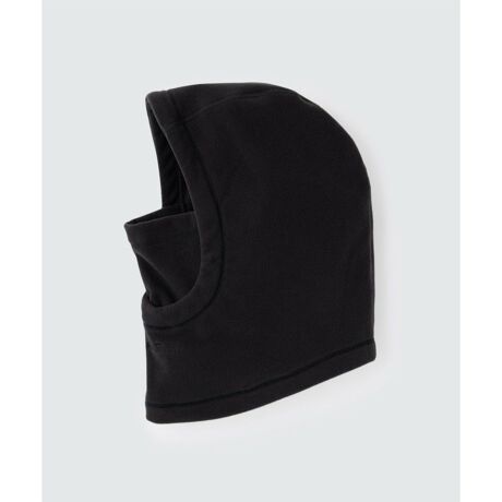 顔の下半分を覆う共地の風よけがついており、顎下のドローコードで顔周りを絞ることでさらに防寒性を高められる。