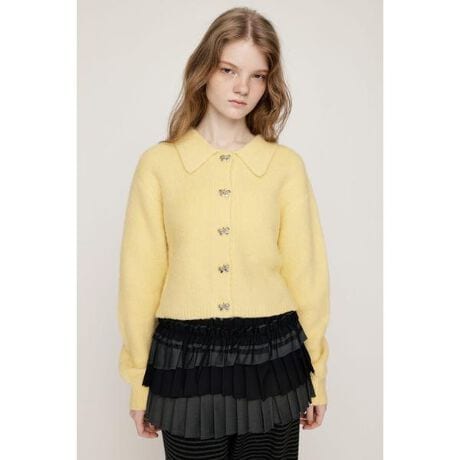【RIBBON BUTTON SHAGGY C/D】■POINT:ふんわり感と甘さを両立した、シャギー素材のガーリートップス。やわらかく包み込むような触り心地が魅力のシャギー素材を使用し、見た目にも暖かみのある1枚。■DETAIL:フロントのボタンはリボンデザインになっています。ベーシックカラーに加えて、着こなしのアクセントになる差し色のイエローもラインナップ。1枚で主役になる存在感のあるアイテムです。■STYLING:カーディガンとしてはもちろん、フロントを閉じて1枚で着用いただくのがおすすめです。ミニスカート×ロングブーツで甘さ全開のスタイリングに。トップスのリボンと足元のボリュームでバランスよく、ガーリーながらも今っぽい抜け感を演出。■FABRIC/MATERIAL:触り心地の良いシャギー素材を使用。■透け感:なし■光沢感:なし■伸縮性:なし■裏 地:なし[注意事項]※画像の商品はサンプルです。実際の商品と仕様、加工が若干異なる場合があります。※画像の商品は光の照射や角度、お使いのモニター環境により、実物と色味が異なる場合がございます。※着用、お取り扱いの際は、アテンションタグをご確認ください。※一部予約商品につきましては生産上の都合によりお届け予定日や店頭発売と前後する場合もございます。※追加生産商品は、一部の店舗、通販で販売中の場合がございます。予めご了承下さい。