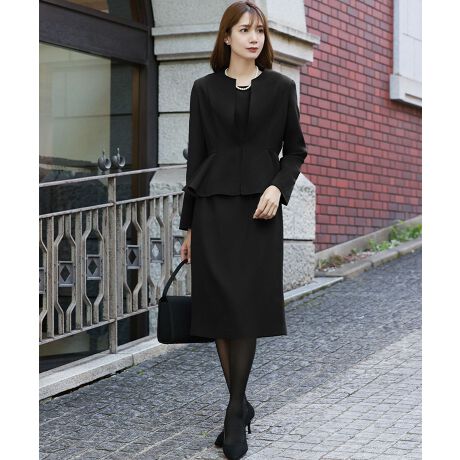 ジャケットとワンピースがセットになったブラックフォーマルスーツ。