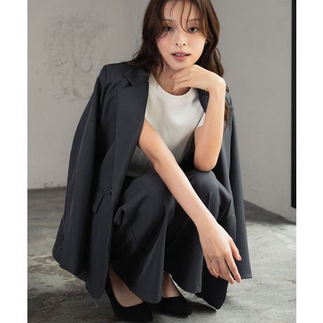 テーラードジャケットとワイドパンツの2点セットアップスーツ