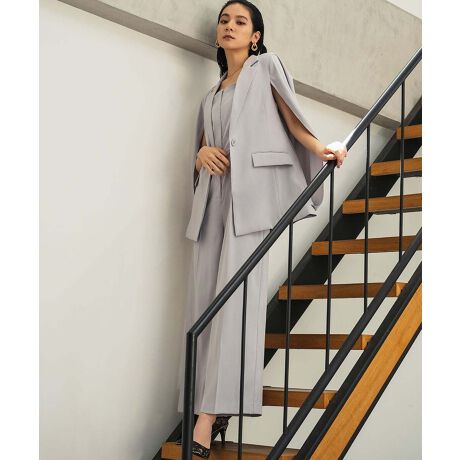 ケープジャケットとオールインワンの2点セットアップスーツ。