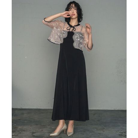 ショート丈レースブラウスとキャミワンピースのセットドレス。