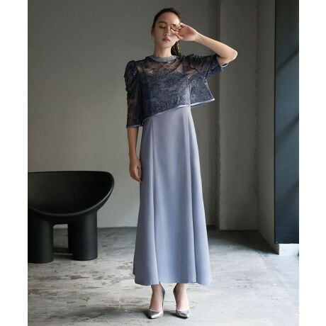 ショート丈レースブラウスとキャミワンピースのセットドレス。