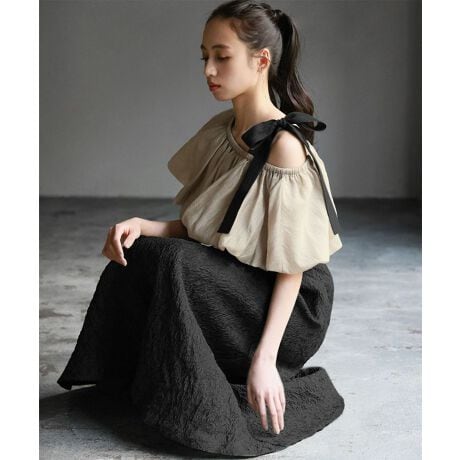 ボリューム感のあるバルーン部分がバストのラインを曖昧にしてくれ、着方によっては二の腕も自然にカバーしてくれます。