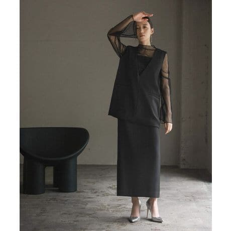かっちりとした印象のジレをシアー素材と合わせることで抜け感をプラス。