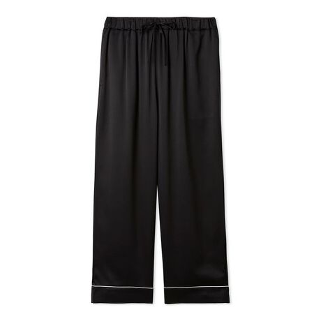 フレンチの巨匠が追求した“美食の哲学”を体現する、『ジョエル・ロブション』との新作コラボレーションシリーズ。ブラックの艶やかな光沢感が毎日のリラックス時間を彩る、サテン素材のロングパンツです。さらっとなめらかな肌触りで、ゆとりのあるストレートシルエットに仕上げました。裾に配色のパイピングを入れ、右後ろのポケットにはシリーズ共通のロゴ刺繍もあしらっています。同シリーズのシャツと合わせたり、LADIES’サイズとのペア・コーディネートもお楽しみください。