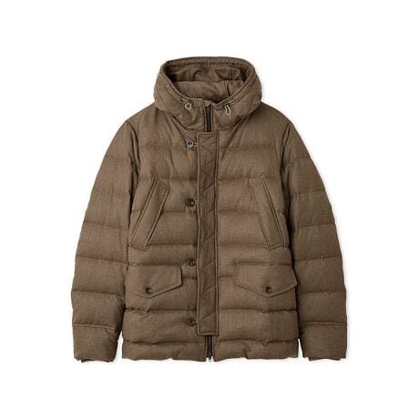 上質な梳毛ウールを贅沢に使用した、ラグジュアリーな印象のフーディダウンジャケット。
