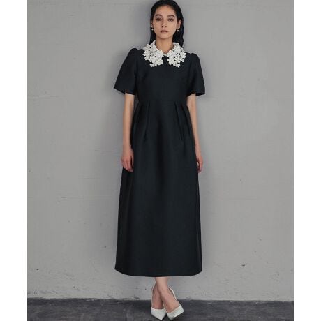 上品な雰囲気を演出する、レースカラーコクーンドレスになります。