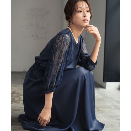上品な透け感を生みだすレースをふんだんに使用した、高級感のあるパーティードレス。