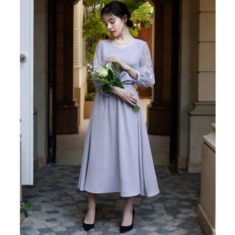 上品な透け感を生みだすレースをふんだんに使用した、高級感のあるパーティードレス。