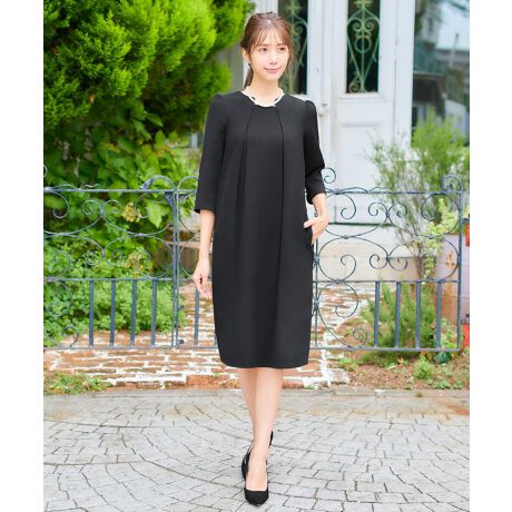 ジャケットを羽織ったように見えるきちんと感が特徴のトロンプルイユワンピース。