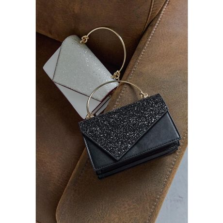 niana ニアナ アシンメトリーなフラップに煌めくグリッターを贅沢にあしらったハンドバッグ。