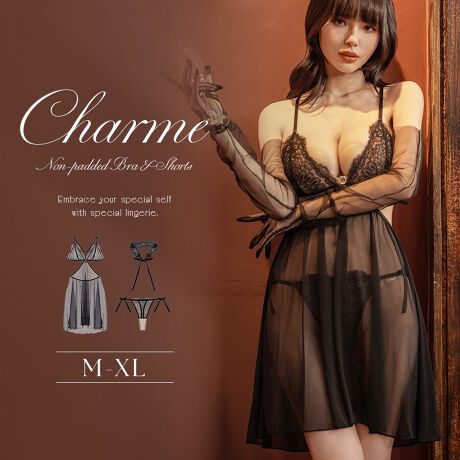 シャルムチュールベビードール&サイドリボンTバックショーツ&レースチョーカー