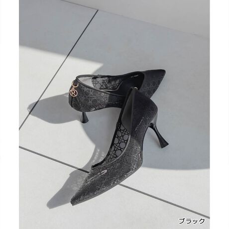 キルティング風パターンのシアー生地が上品な印象のパンプス。