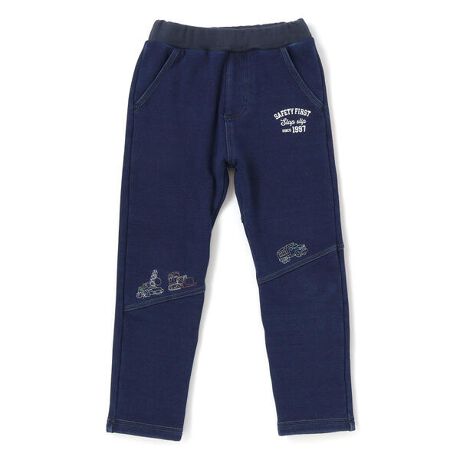 デニム裏シャギー素材を使用した、男の子用のあたたかいロングパンツ。