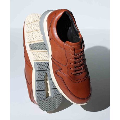 ソフトに加工されたレザーを使用し、2種の硬度から成るアウトソールは柔らかく安定感のある履き心地を実現。